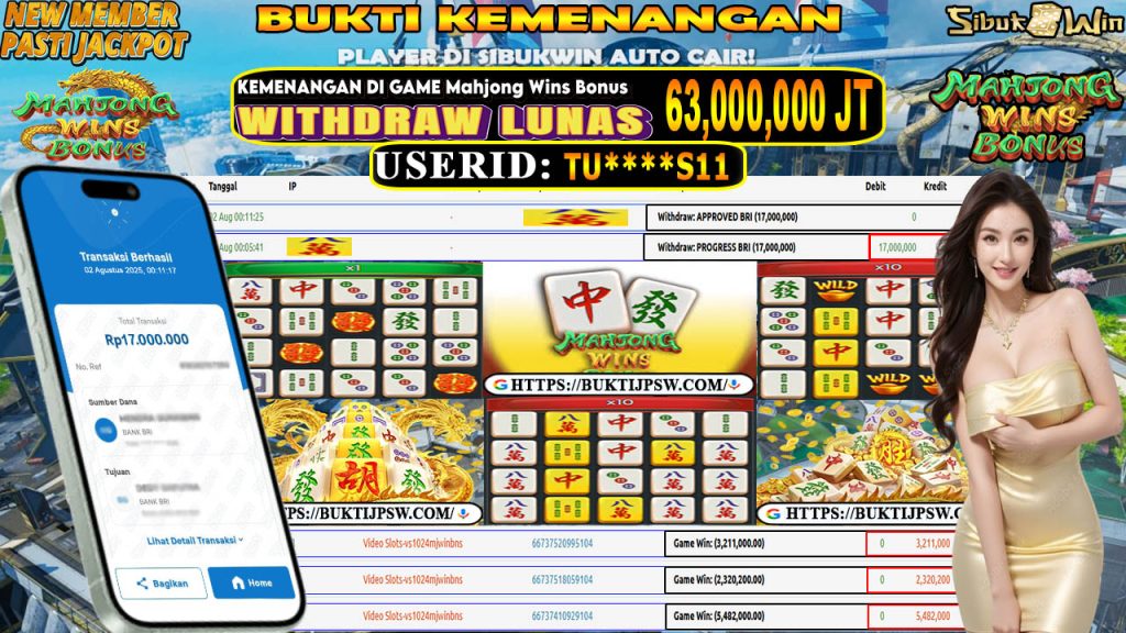 Bukti Kemenangan 01 Agustus 2025 DI GAME Mahjong Wins Bonus 17 Juta