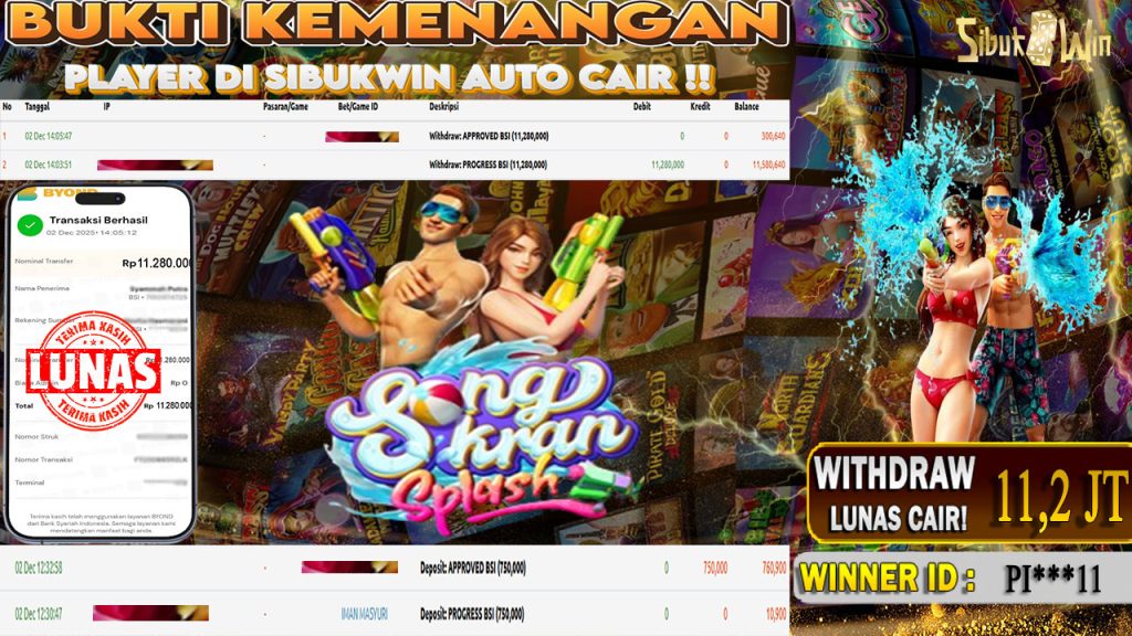 BUKTI KEMENANGAN 02 DESEMBER 2025 DI GAME Songkran Splash 11,2 JUTA