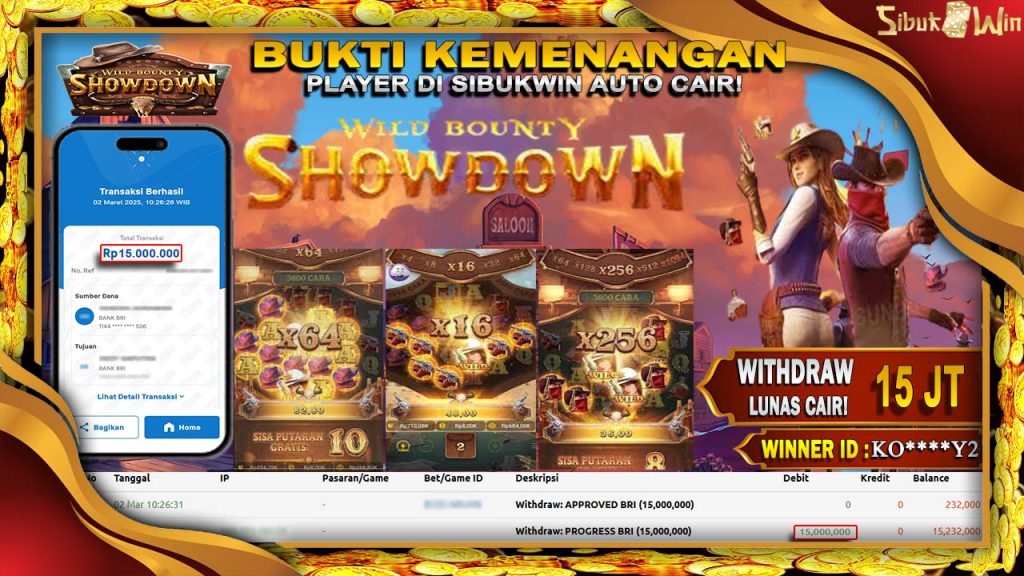 Bukti Kemenangan 02 Maret 2026 Di Game Wild Bounty Showdown 15 JUTA