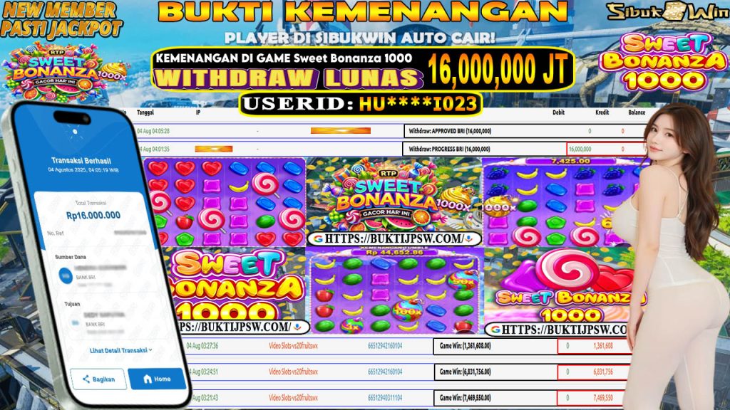 Bukti Kemenangan 04 Agustus 2025 DI GAME Sweet Bonanza 1000 16 Juta