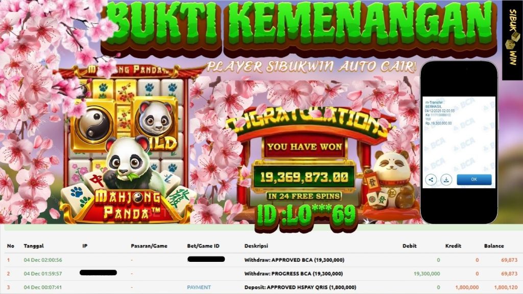 BUKTI KEMENANGAN 04 DESEMBER 2025 DI GAME Mahjong Panda 19,3 JUTA