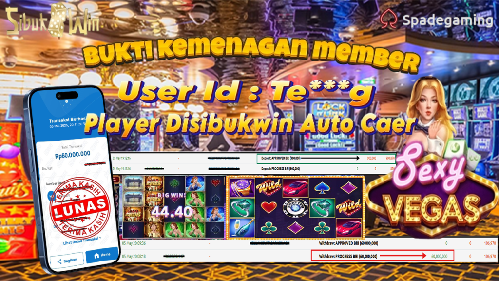 Bukti Kemenangan 05 Mei 2025 Di Game Sexy Vegas WD 60 Juta