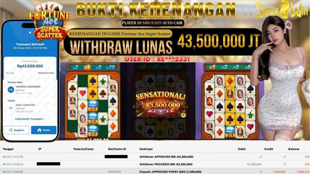 BUKTI KEMENANGAN 06 October 2025 DI GAME Fortune Ace Super Scatter 43,5 JUTA