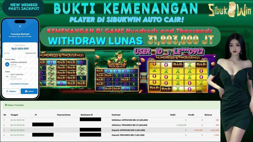 BUKTI KEMENANGAN 06 October 2025 DI GAME Hundreds and Thousands 31,8 JT