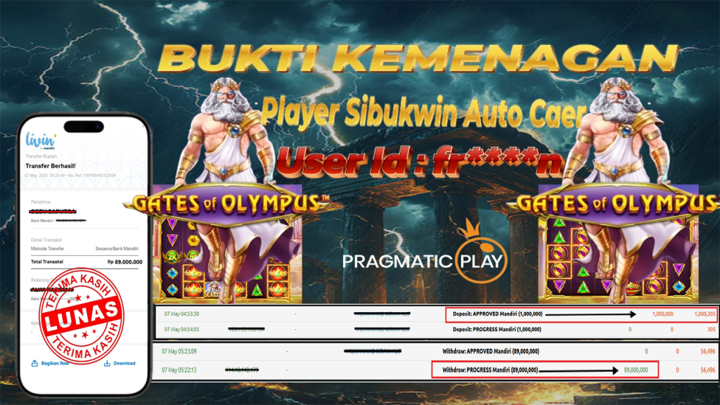 Bukti Kemenangan 07 Mei 2025 Di Game Gates of Olympus WD 89 Juta