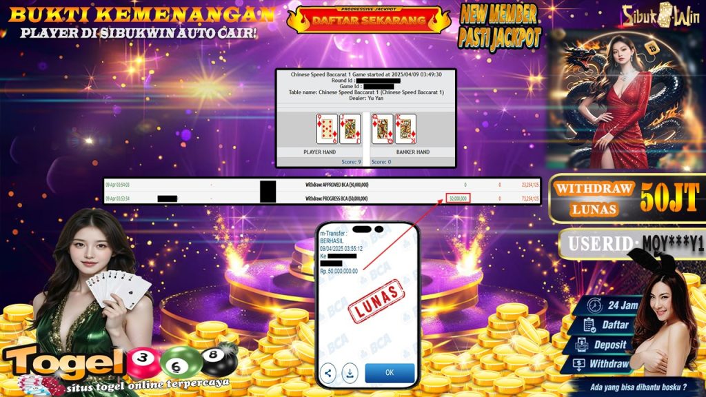 Bukti Kemenangan 09 April 2025 Di Live Casino BACCARAT WD 50 Juta