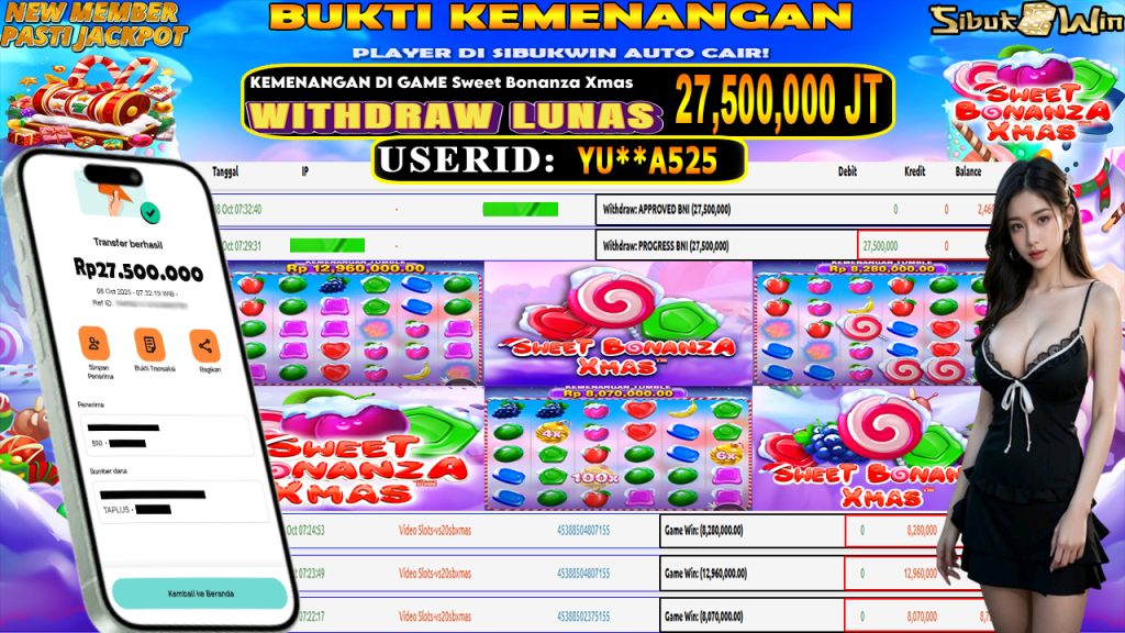 BUKTI KEMENANGAN 08 October 2025 DI GAME Sweet Bonanza Xmas 27,5 JUTA