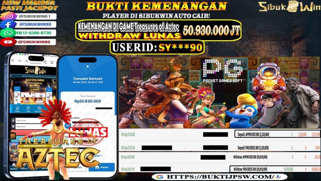 Bukti Kemenangan 09 MEI 2025 Di Game Treasures of Aztec WD 50,9 Juta