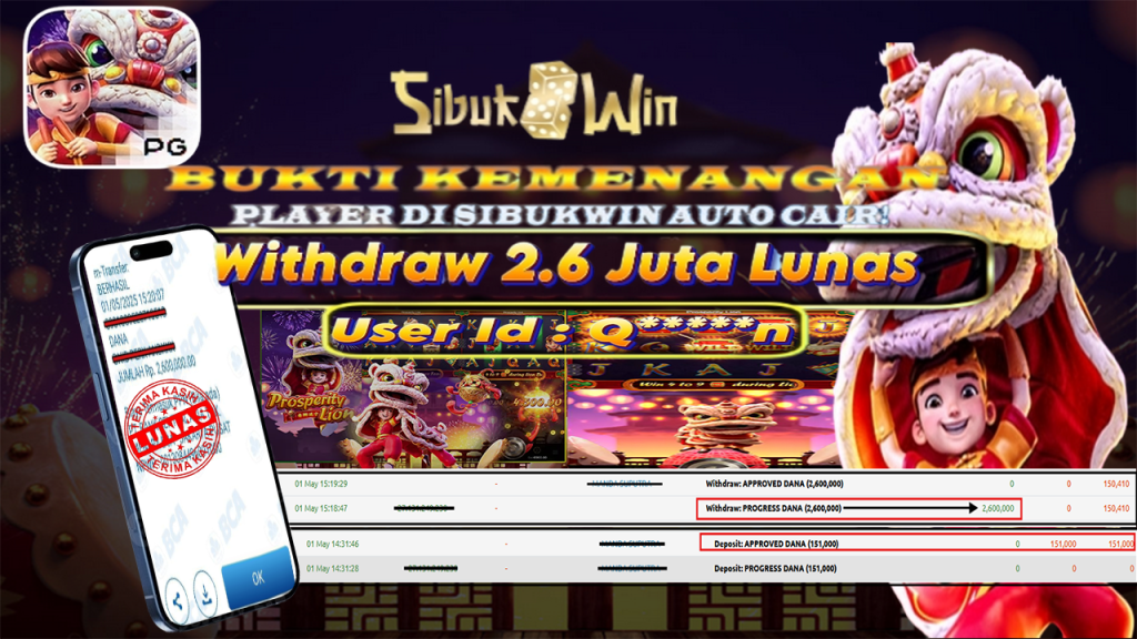 Bukti Kemenangan 1 Mei 2025 Di Game Prosperity Lion WD 2.6 Juta
