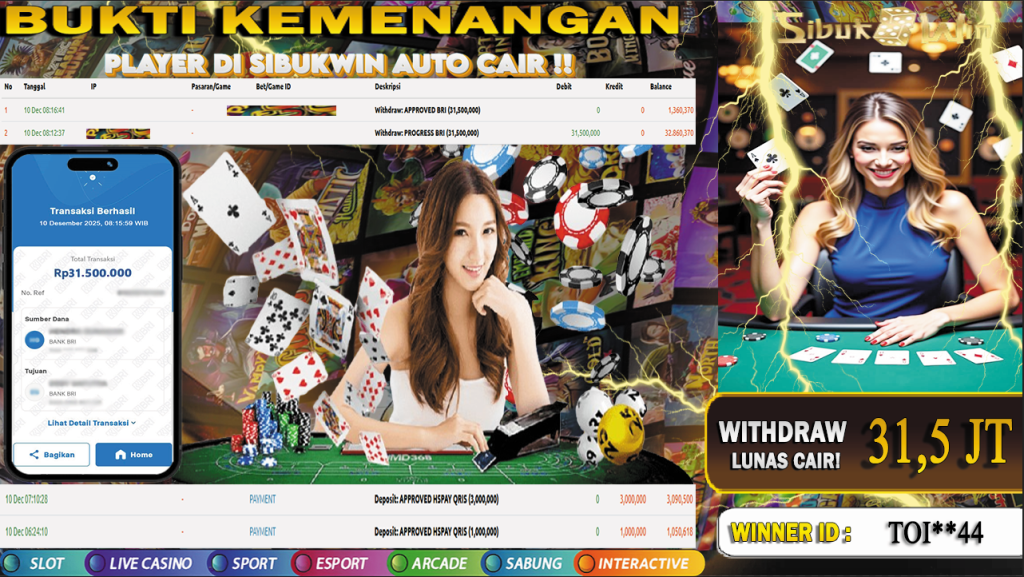BUKTI KEMENANGAN 10 DESEMBER 2025 DI GAME Live Baccarat 31,5 JUTA