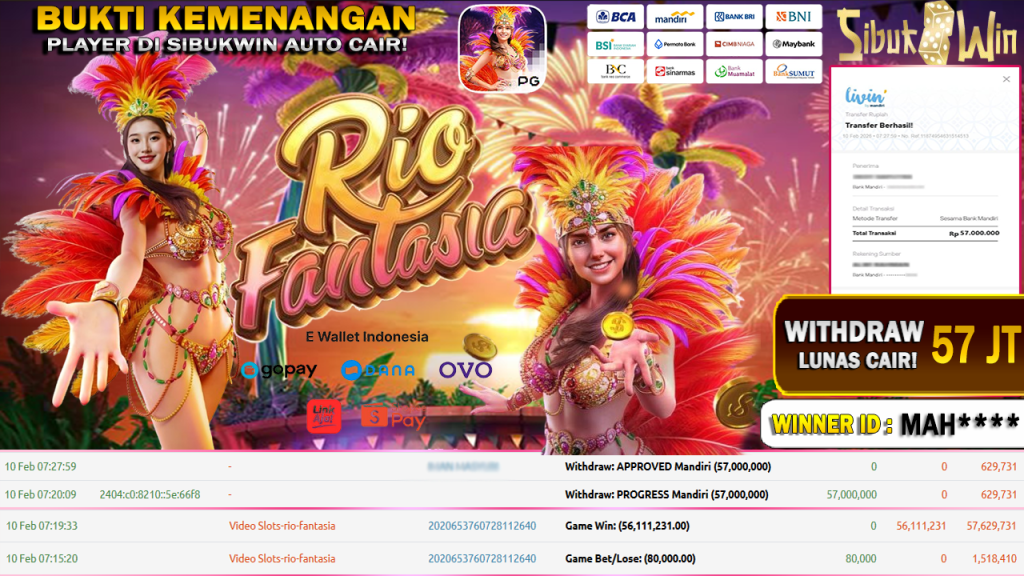 BUKTI KEMENANGAN 10 FEBRUARI DI GAME RIO FANTASIA WITHDRAW RP 57.000.000.-
