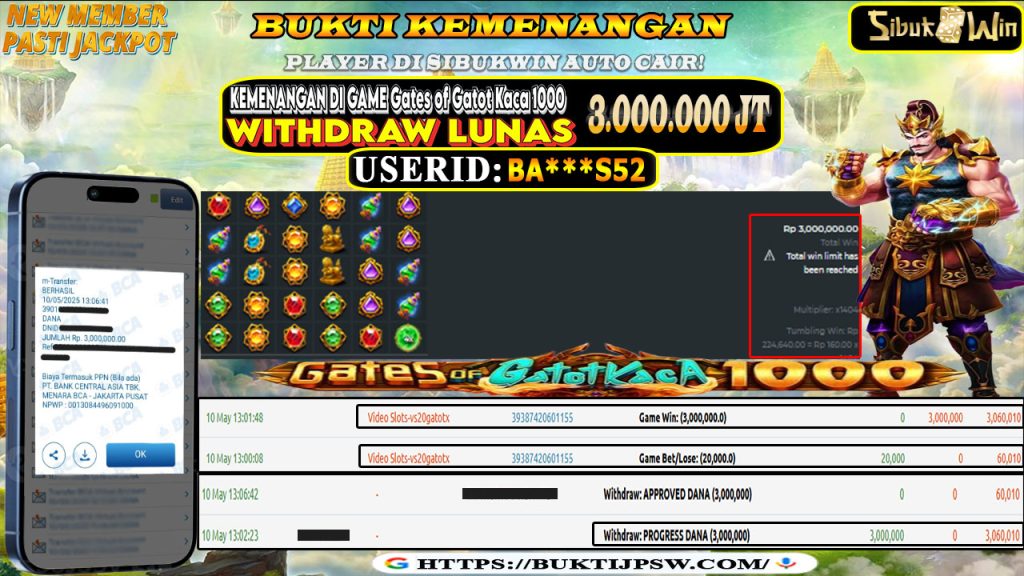 Bukti Kemenangan 10 MEI 2025 Di Game Gates of Gatot Kaca 1000 WD 3 Juta