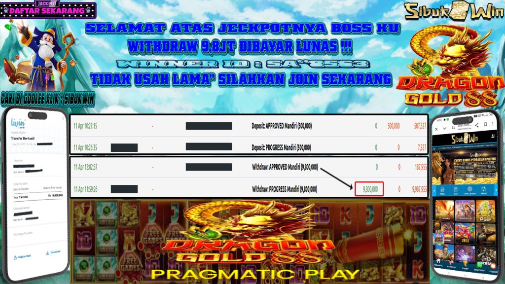 Bukti Kemenangan 11 April 2025 Di Game Dragon Gold 88 WD 9,8 Juta