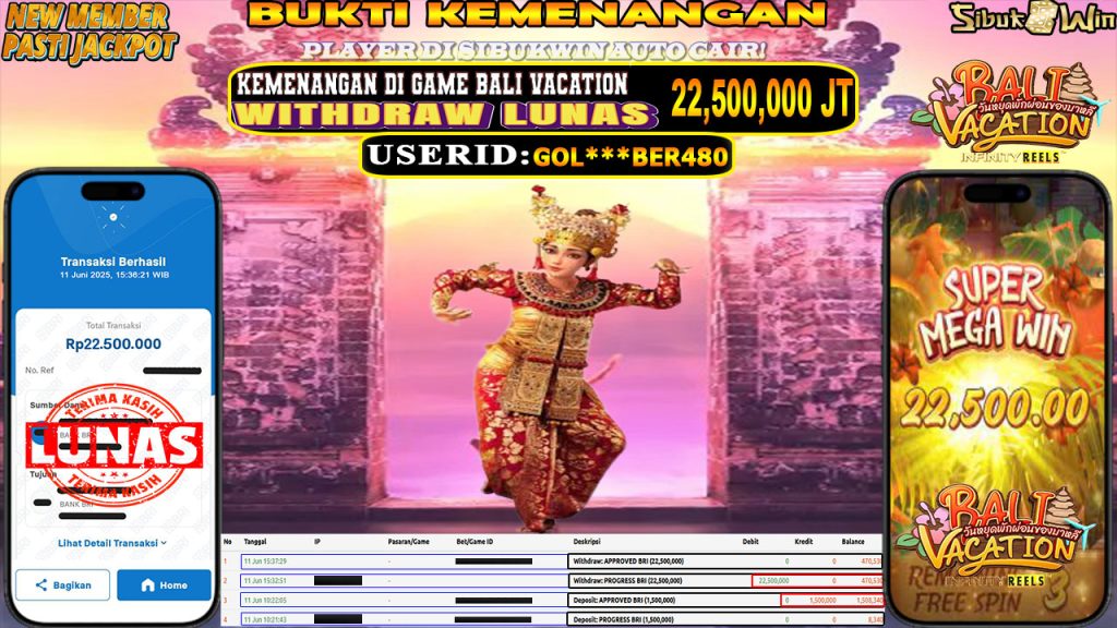 Bukti Kemenangan 11 JUNI 2025 Di GAME Bali Vacation 22,5 Juta