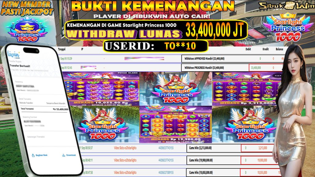 Bukti Kemenangan 11 September 2025 Di Game Starlight Princess 1000 Wild 33,4 Juta