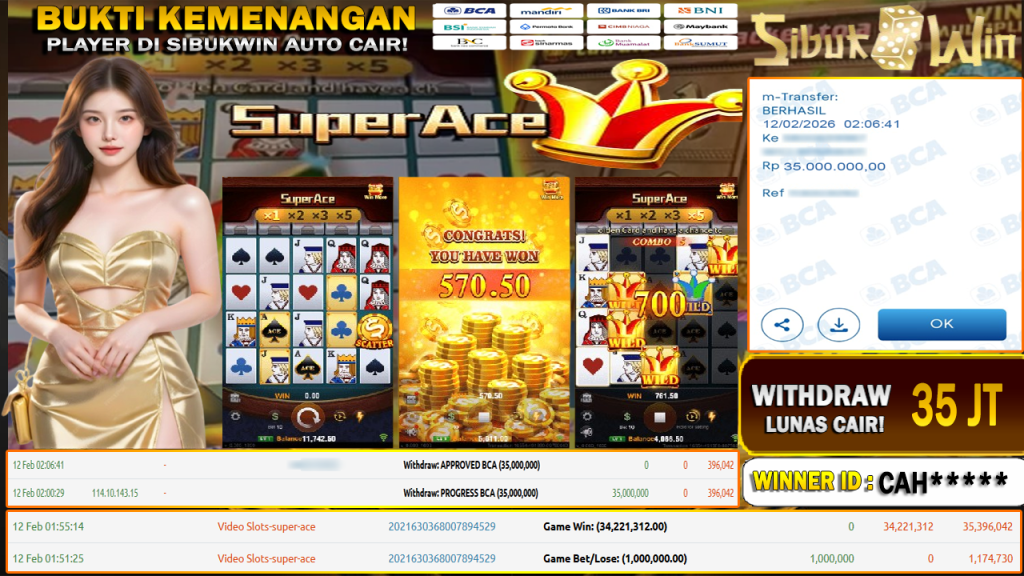 BUKTI KEMENANGAN 12 FEBRUARY DI GAME SUPER ACE WITHDRAW RP 35.000.000.-