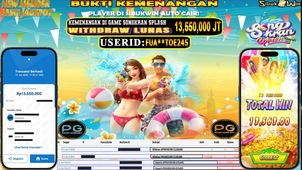Bukti Kemenangan 12 JUNI 2025 Di GAME Songkran Splash 13,5 Juta