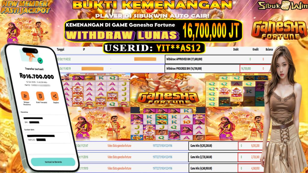 BUKTI KEMENANGAN 12 October 2025 DI GAME Ganesha Fortune 16,7 JUTA