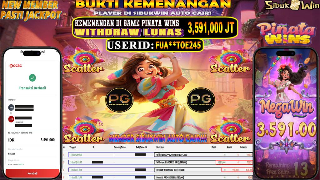 Bukti Kemenangan 13 JUNI 2025 Di GAME Pinata Wins 3,5 Juta