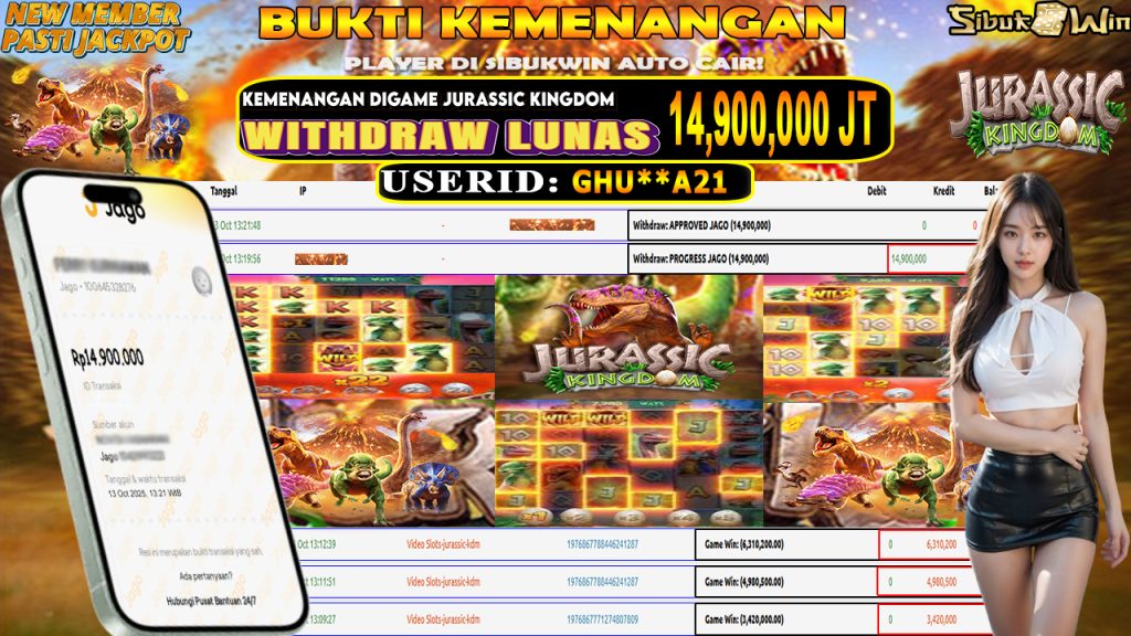 BUKTI KEMENANGAN 13 October 2025 DI GAME Jurassic Kingdom 14,9 JUTA