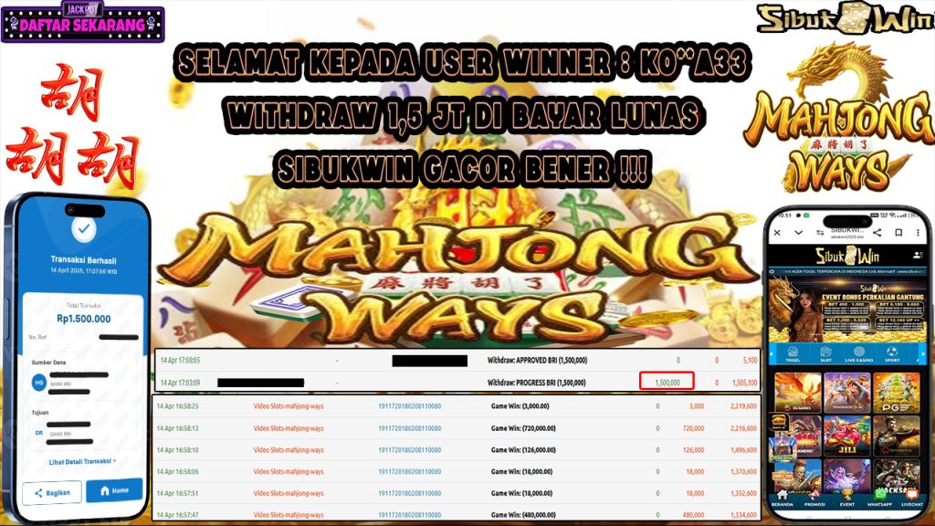 Bukti Kemenangan 14 April 2025 Di Game Mahjong Ways WD 1,5 Juta