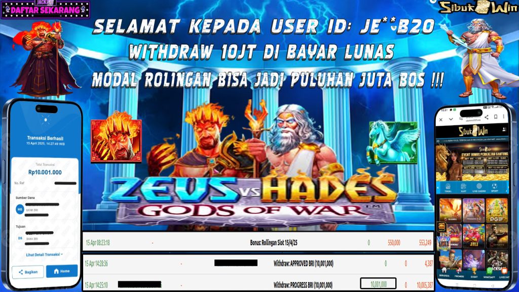 Bukti Kemenangan 15 April 2025 Di Game Zeus vs Hades – Gods of War™ WD 10 Juta