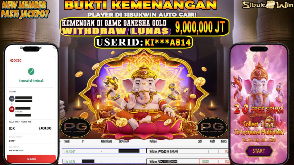 Bukti Kemenangan 15 JUNI 2025 Di GAME Ganesha Gold WD 9 Juta