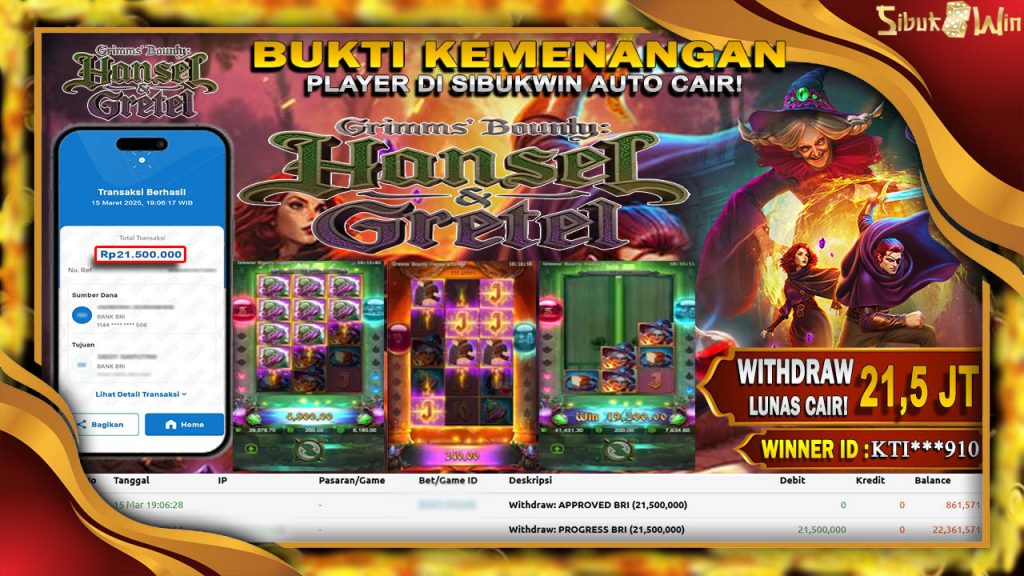 Bukti Kemenangan 15 Maret 2026 Di Game Grimms Bounty: Hansel & Gretel 21,5 JUTA
