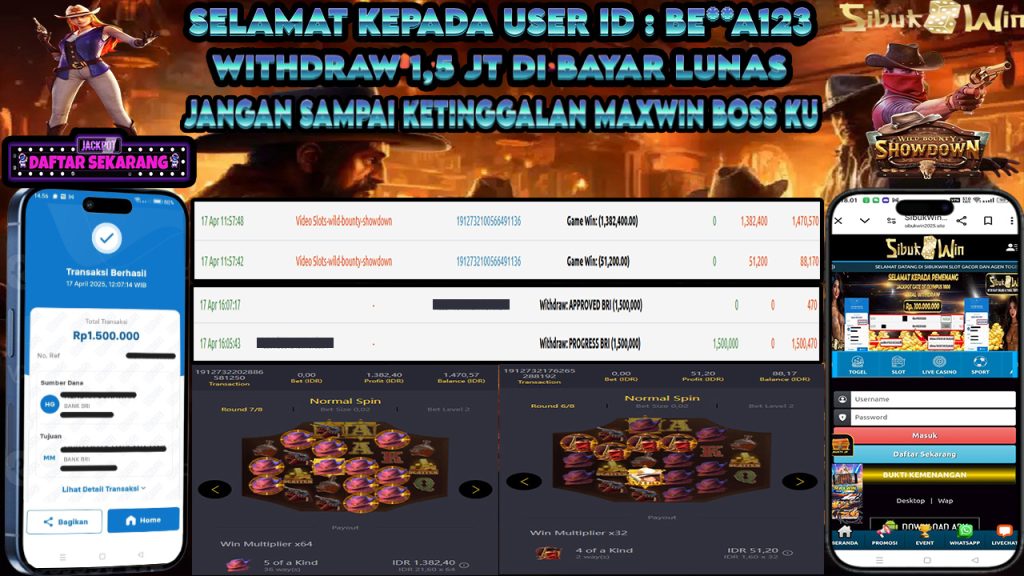 Bukti Kemenangan 16 April 2025 Di Game Wild Bounty Showdown WD 1,5 Juta