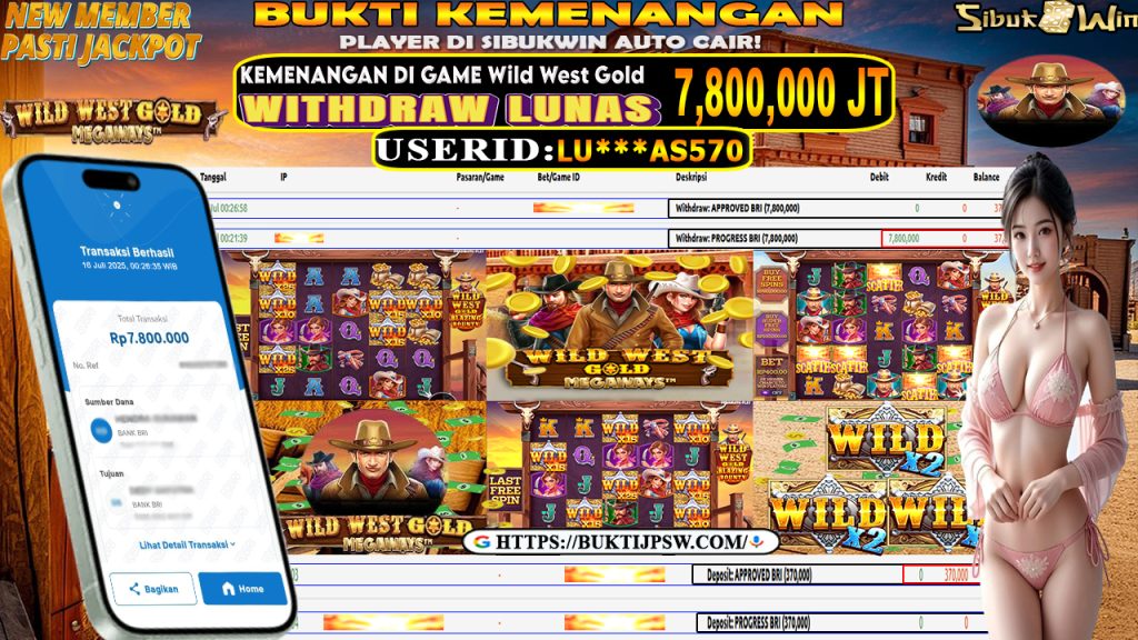 BUKTI KEMENANGAN 16 JULI 2025 DI GAME Wild West Gold 7,8 JUTA