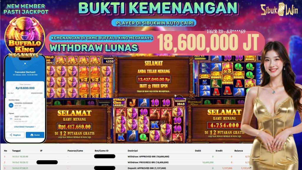 BUKTI KEMENANGAN 16 October 2025 DI GAME Buffalo King Megaways 18,6 JUTA