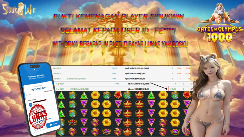 Bukti Kemenangan 17 April 2025 Di Game Gates Of Olympus 1000 WD 23.1 Juta