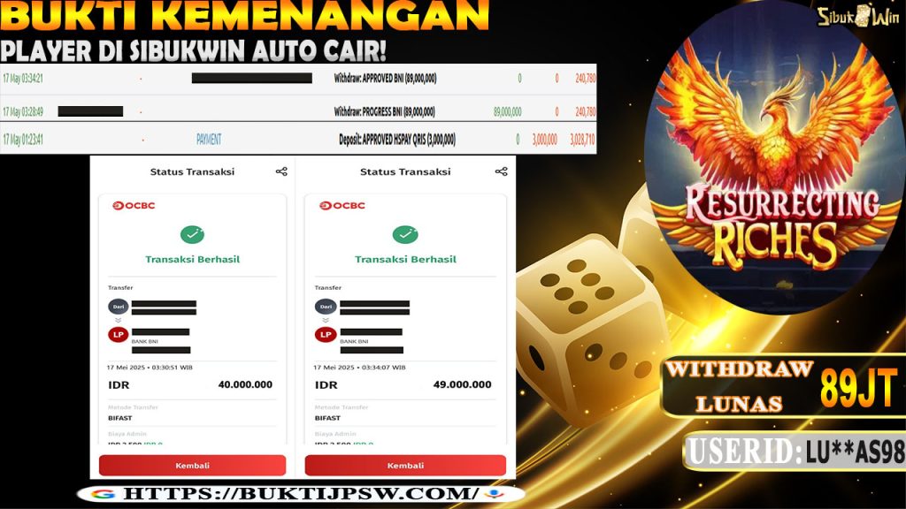 Bukti Kemenangan 17 MEI 2025 Di GAME Resurrecting Riches WD 89 Juta