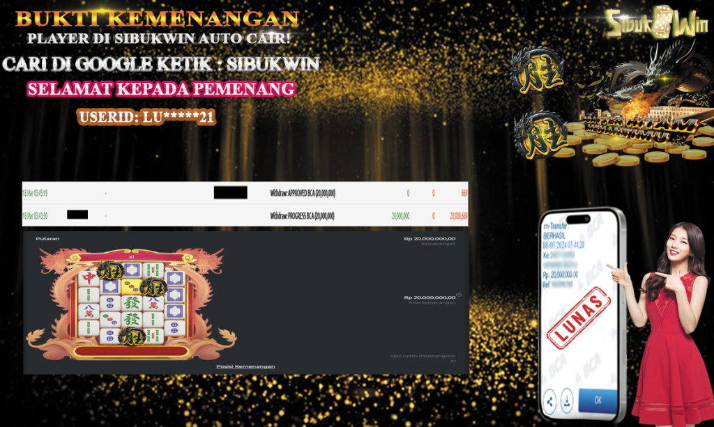 SIBUKWIN merupakan Situs Gacor dan Terpercaya yang membayar semua kemenangan member hingga lunas. Setiap pembayaran pada situs kami dilakukan dengan cara transfer ke rekening tujuan yang sudah di daftarkan pada situs online kami, Pembayaran hanya dapat di proses jika rekening yang di daftarkan telah valid dan dapat di transfer.  Semua kemenangan member yang mendapatkan hadiah jackpot terbesar akan kami posting agar semua pemain dapat melihat situs terpercaya SIBUKWIN ini membayar semua kemenangan member hingga lunas. Setiap postingan yang kami posting akan kami lakukan sensor pada nomor rekening 4 digit dan nama rekening untuk menjaga privasi dan kerahasiaan member. Postingan Jackpot yang kami posting agar member atau pemain yang belum pernah bermain bisa melihat bandar togel Bukan Kaleng Kaleng Seperti SIBUKWIN ini, Semua postingan jackpot yang kami posting dapat di lihat data keasliannya melalui nomor reff yang di tunjukan pada bank atau mbanking saat kita melakukan transfer.