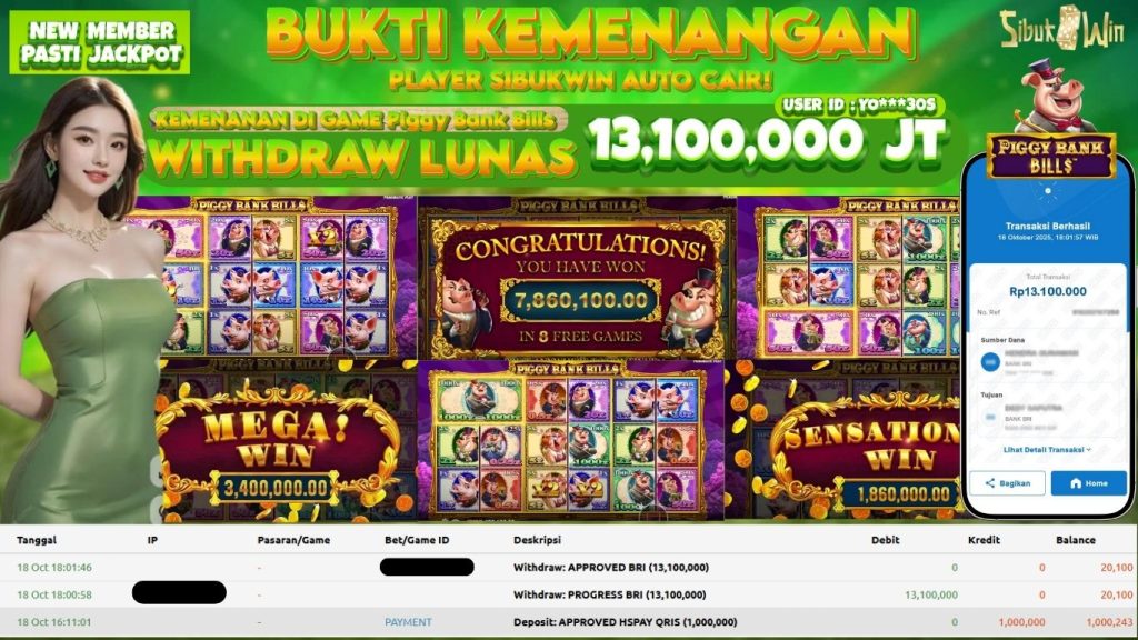 BUKTI KEMENANGAN 18 October 2025 DI GAME Piggy Bank Bills 13,1 JUTA