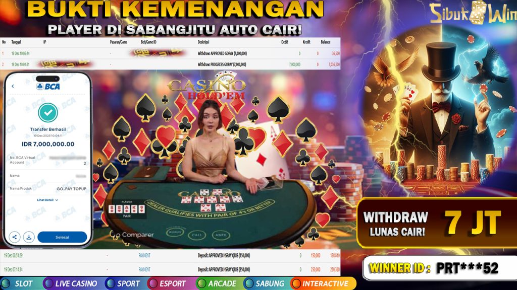 Bukti Kemenangan 19 Desember 2025 Di GAME Casino Hold’em 7 JUTA