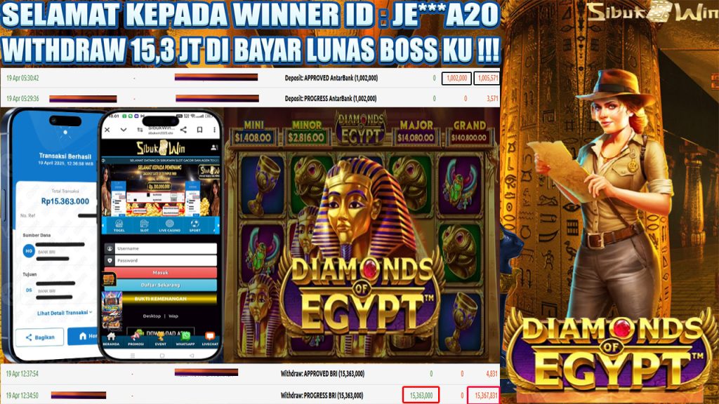 Bukti Kemenangan 19 Maret 2025 Di Game Diamonds of Egypt WD 15,3 Juta