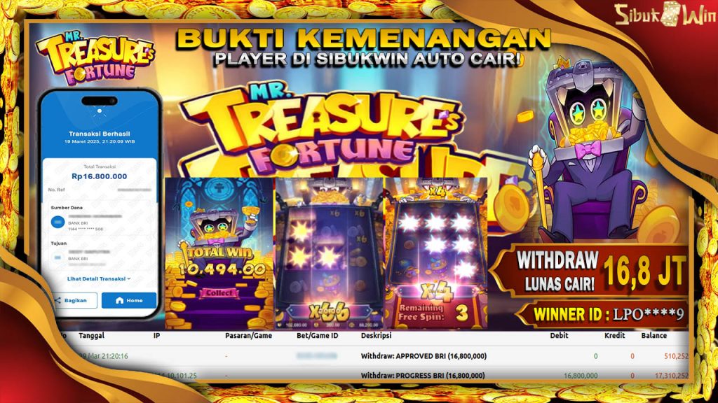 Bukti Kemenangan 19 Maret 2026 Di Game Mr Treasures Fortune 16,8 JUTA