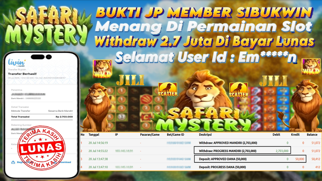 Bukti Kemenangan 20 Juli 2025 Di Game Safari Mystery WD 2.7 Juta