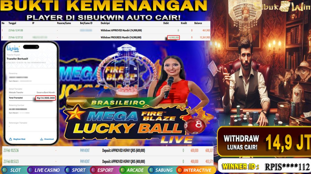 Bukti Kemenangan 23 Februari 2026 Di Mega Fire Blaze Lucky Ball 14,9 JUTA