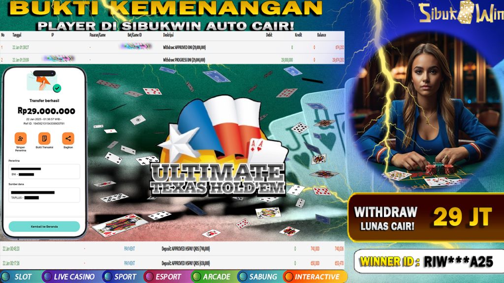 Bukti Kemenangan 22 Januari 2026 Di Game Ultimate Texas Hold’em T501 29 JUTA