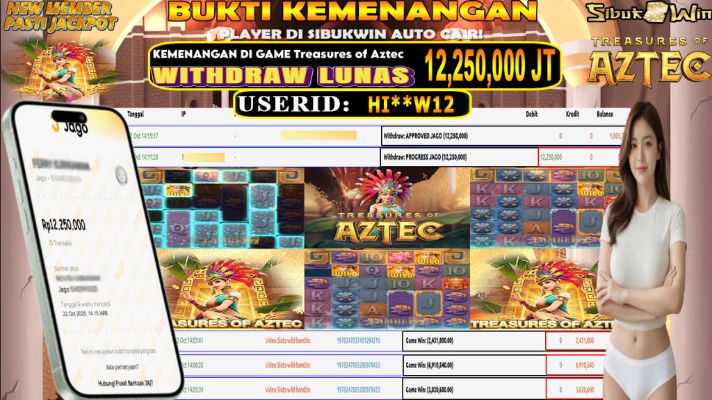 BUKTI KEMENANGAN 22 October 2025 DI GAME Treasures of Aztec 12,2 JUTA