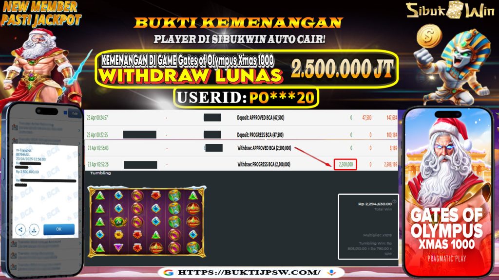 Bukti Kemenangan 23 April 2025 Di Game Gates of Olympus Xmas 1000 WD 2,5 Juta