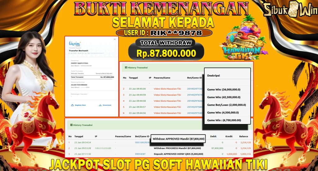 Bukti Kemenangan 23 Januari 2026 Di Game Hawaiian Tiki 87,8 JUTA
