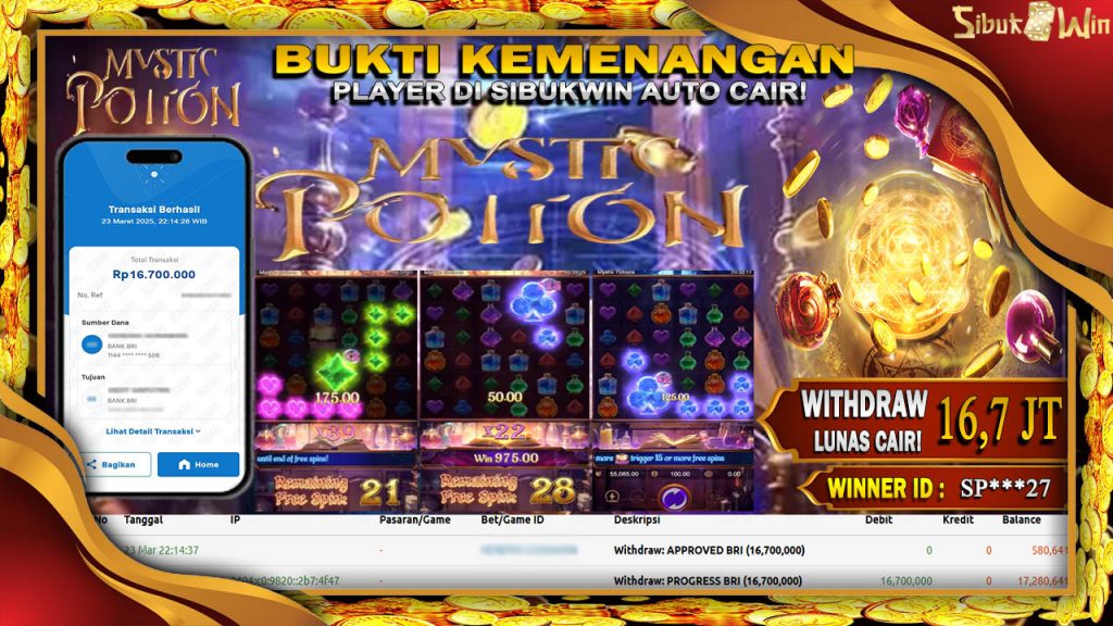 Bukti Kemenangan 23 Maret 2026 Di Game Mystic Potion 16,7 JUTA
