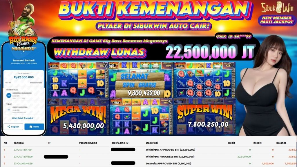 BUKTI KEMENANGAN 23 October 2025 DI GAME Big Bass Bonanza Megaways 22,5 JUTA