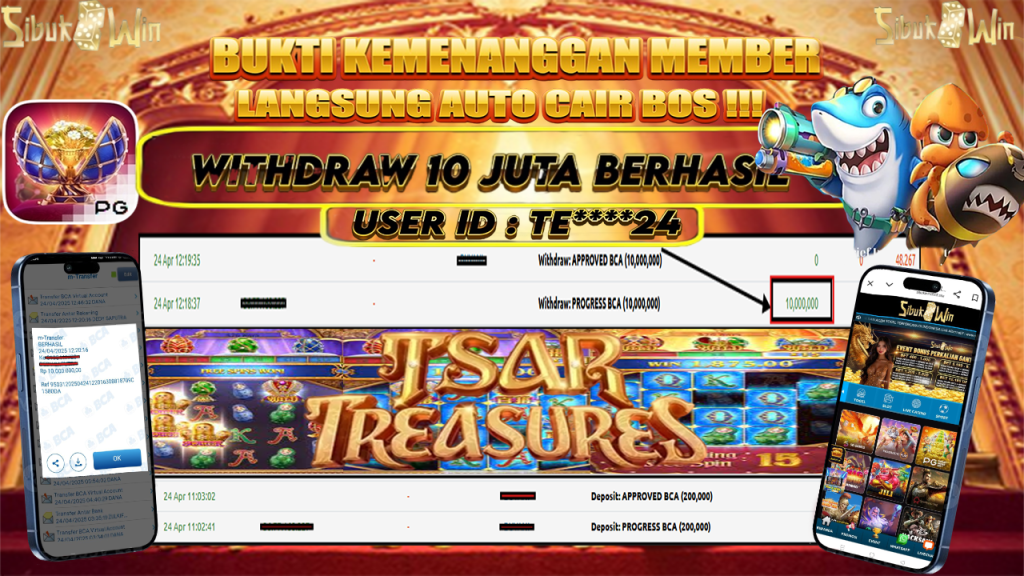 Bukti Kemenangan 24 April 2025 Di Game Tsar Treasures WD 10 Juta