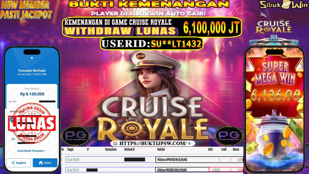 Bukti Kemenangan 24 JUNI 2025 DI GAME Cruise Royale WD 6,1 Juta