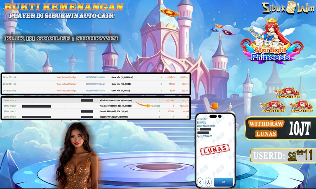 Bukti Kemenangan 24 Maret 2025 Di Game Starlight Princess WD 10 Juta