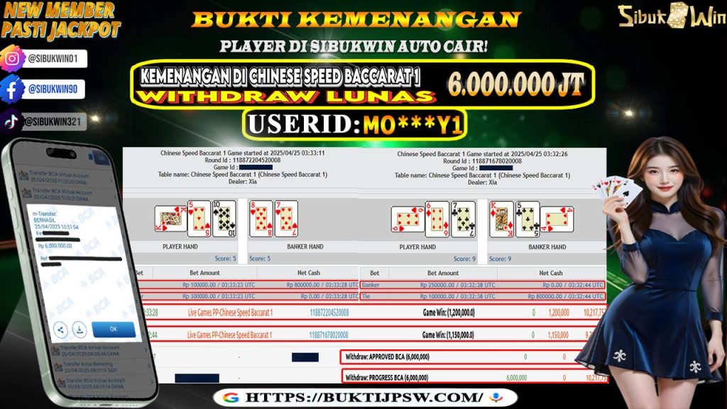 Bukti Kemenangan 25 April 2025 Di CHINESE SPEED BACCARAT 1 WD 6 Juta